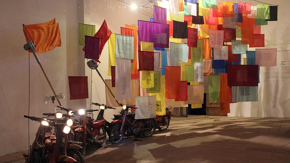 Motorbikes without machine, fabric flags / Dimension variable